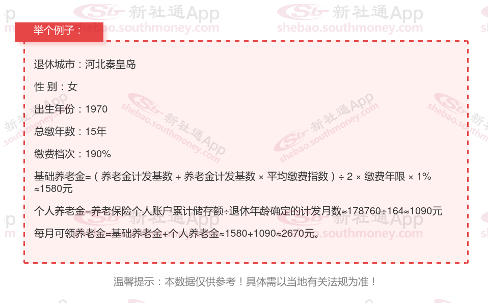 河北秦皇岛15年基础养老金待遇:每月约1580元。