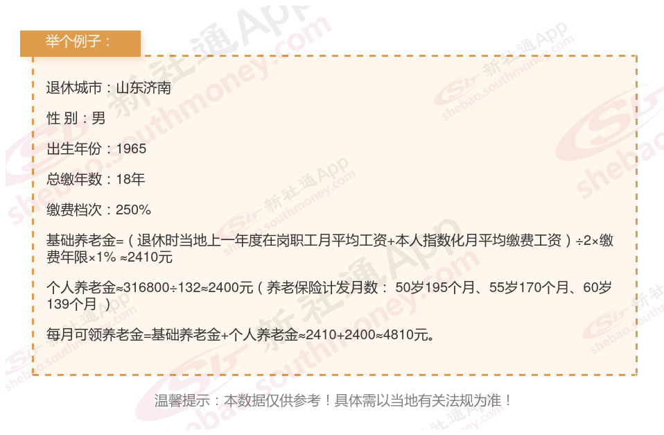 总养老金金额:两者合计,您每月可领取的养老金待遇总额为4810元/月。