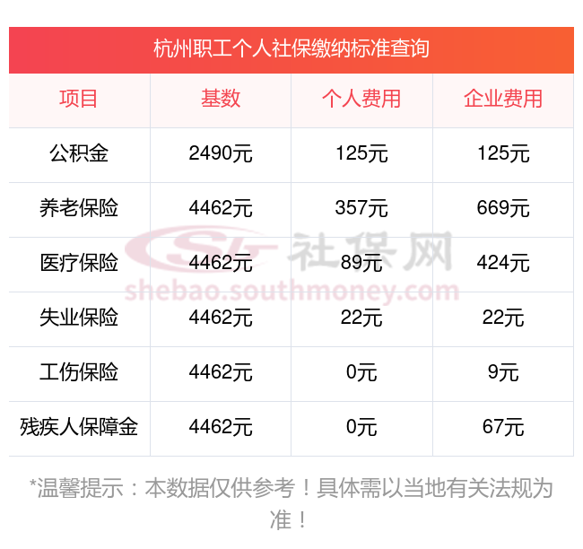 杭州的社保缴费情况,依据2025年最新的缴费标准,我们可以详细地进行如下说明。这些标准是根据新社通app-社保缴费查询工具提供的数据整理得出的: