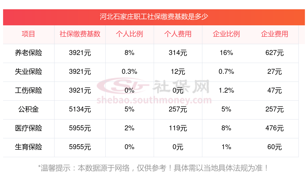 2025社保交多少钱?下表是2025年河北石家庄社保费用明细参考,新社通app-社保缴费查询工具提供的最新数据如下:
