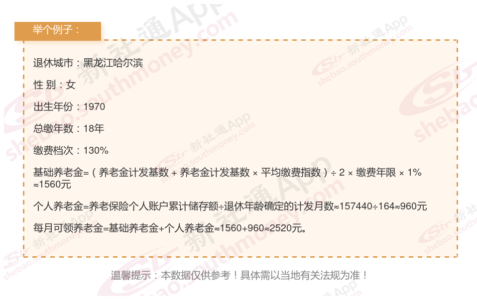 黑龙江哈尔滨18年基础养老金待遇:每月约1560元。
