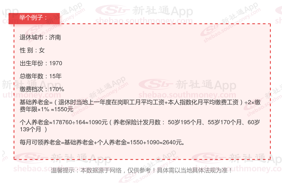 个人档案:女性,1970年出生,济南退休职工,社保缴费15载,档次170%。