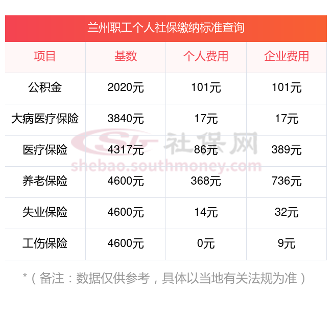 兰州缴费社保比例一览 社保公司和个人各交多少?下表是2024-2025年兰州社保费用明细参考,新社通app-社保缴费查询工具提供的最新数据如下: