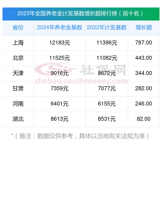 再来看看,全国各城市最新养老金计发基数公布前十名一览