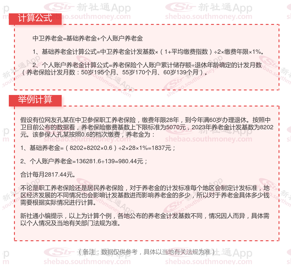为了更加精确地了解自己未来每月能够领取的养老金金额,我们需要深入了解并掌握养老金的计算方法通过了解养老金的计算方式和影响因素,我们可以更好地规划自己的退休生活,确保生活质量不会因为退休而大幅下降。那么,社保交退休,每月能领取多少钱的养老金?下面随新社通app小编一起来看看中卫2025年养老金计算公式。