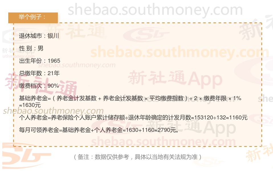退休城市:银川,性别:男,出生年份:1965,总缴年数21年,缴费档次:90%