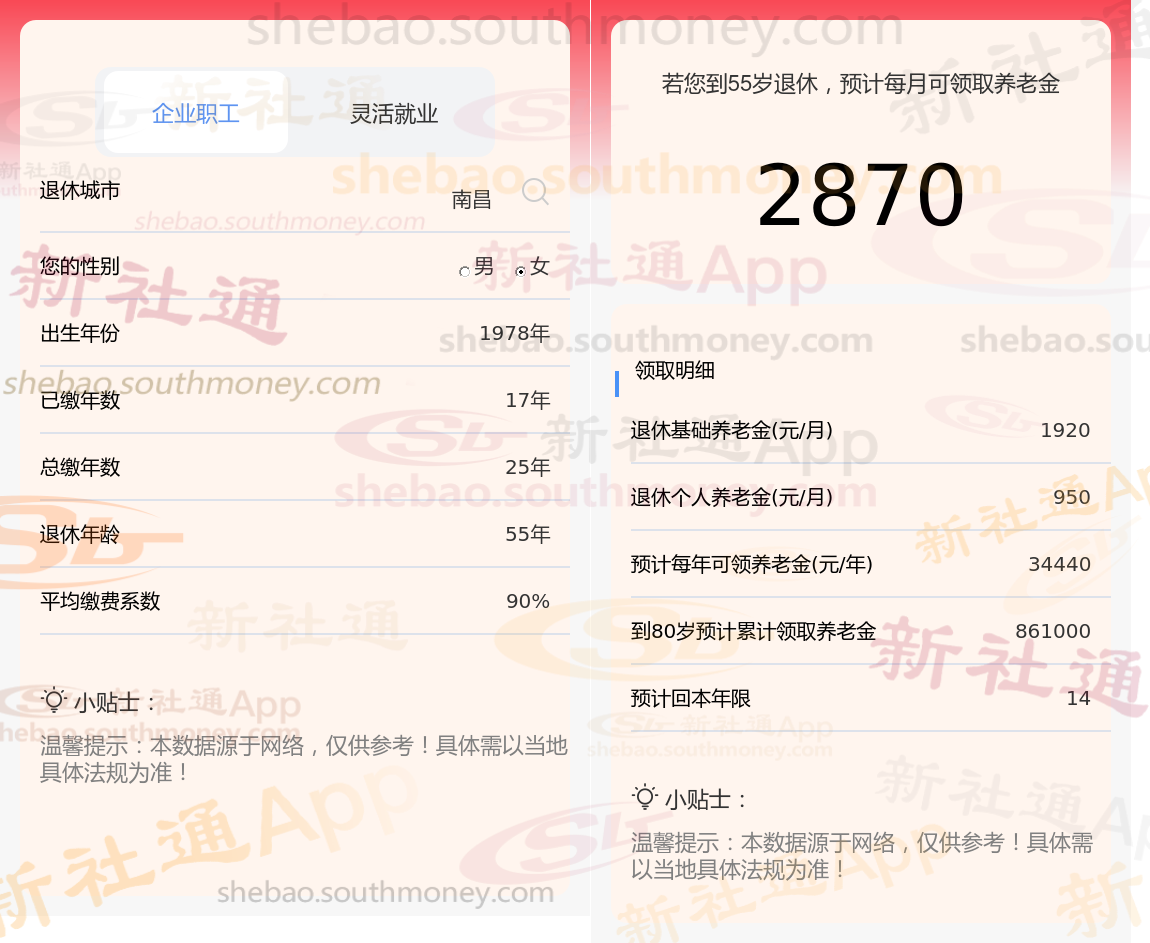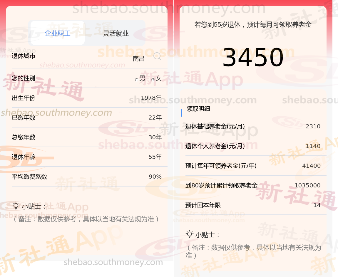 查阅新社通app显示,南昌退休人员养老金计算公式