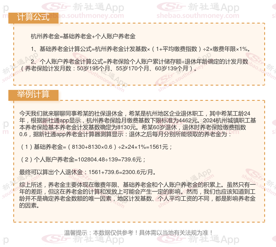 一、杭州养老金计算方法及公式2024最新(在线计算器)