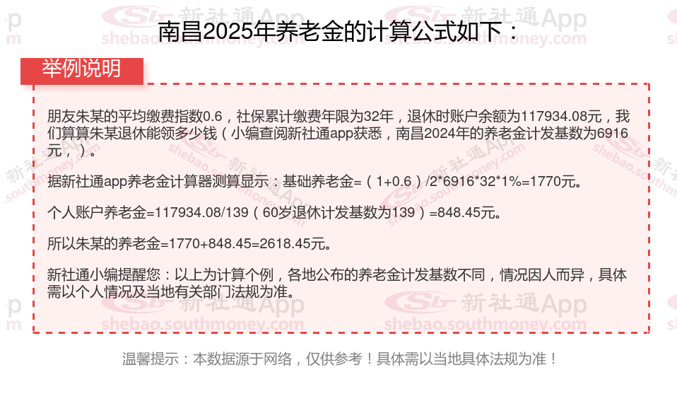 2025南昌退休金领取标准大概能拿多少钱?据新社通app获悉,对于即将或已经步入退休年龄的“老人”来说,养老金的多少直接关系到他们的切身利益,但是很多人又不会计算自己的养老金,下面我们就一起来详细介绍南昌养老金的计算方法。