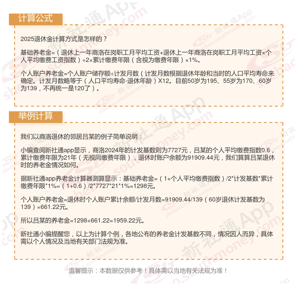 基础养老金的计算方式为全省上年度在岗职工月平均工资与本人平均缴费指数之和的一半,再乘以缴费年限的1%。具体计算公式为: