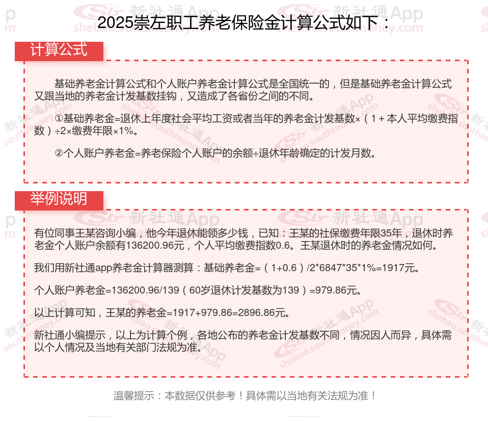 崇左养老金计算方法及公式2024最新(在线计算器)