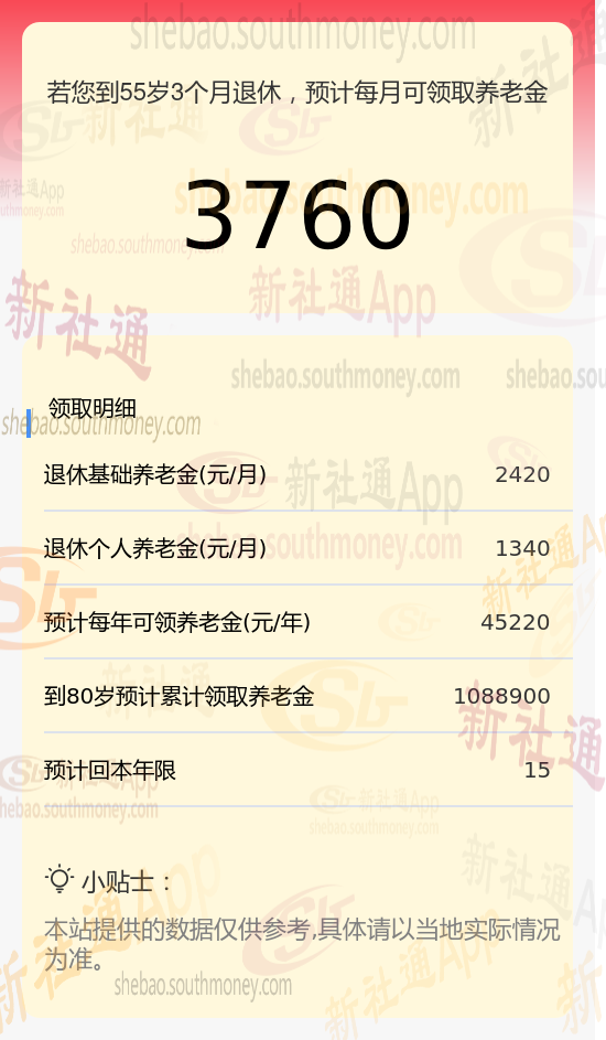 退休年龄:根据新的退休要求,男性预计退休年龄为63岁,女性为55岁或58岁(具体年龄可能因个人情况而异)。请注意,这一信息通常由新社通-app小编系统自动计算得出,您无需手动填写,但应了解相关信息。
